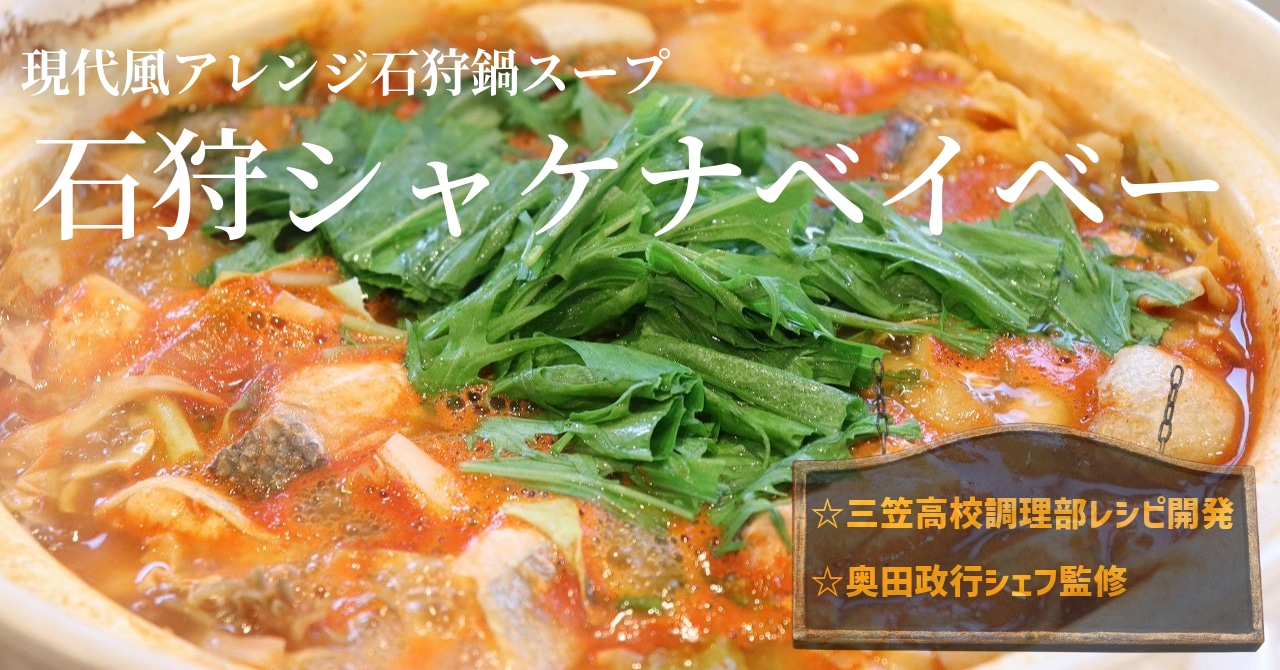 アレンジ石狩鍋としてはもちろん、本製品を使い三笠高校調理部で開発したアレンジレシピメニュー(スープカレー、パエリア、ミネストローネ、クリームパスタ)もオススメで、今年は新たに北海道の郷土料理「ちゃんちゃん焼き」も開発しました!(レシピは本商品のラベルに付いているQRコードから閲覧可能です。)